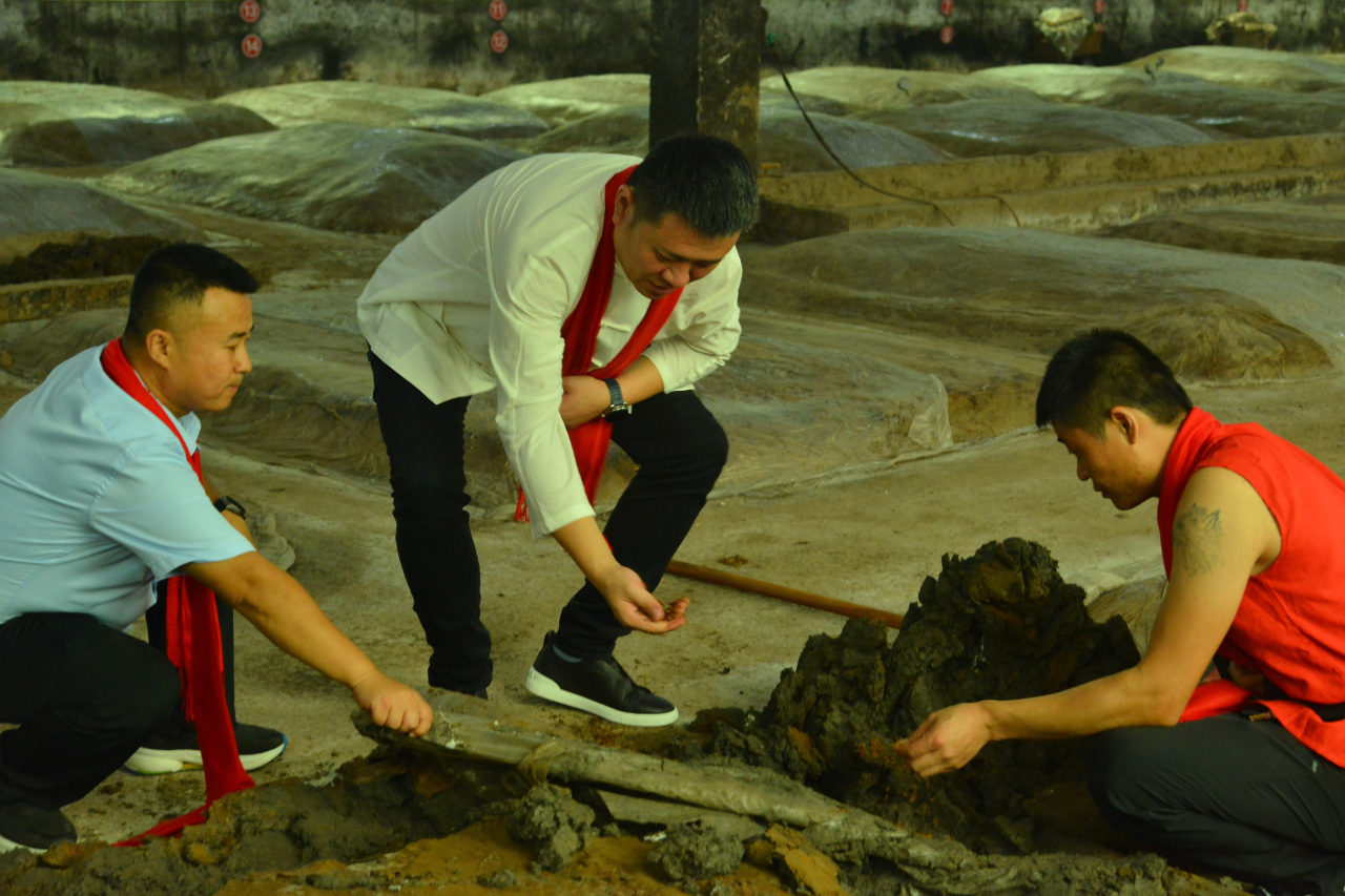 在薛总的带领下,大家神采奕奕,等到良辰吉时一到,便开始开窖。